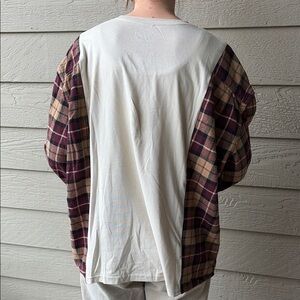 Handmade / Handcrafted from two shirts. A t-shirt matched to a flannel shirt. Each of my upcycled creations is a one of a kind flannel shirt. Bands - Colleges - Sport teams - Pop Coulture - Holiday etc.