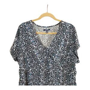 CHAPS Short Sleeve Floral Print Stretch Knit V-neck Top Casual Women's 2X