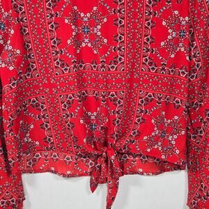 Altar'd State Red Badana Print Front Tie Top. Size Small