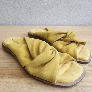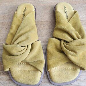 Kelsi Dagger Brooklyn Shoes Womens Size 6.5 Yellow Suede Knot Slide Sandals Comfort