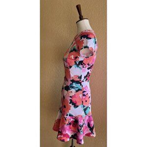 Love...ady Pink Floral Short Sleeve Ruffle Sheath Dress Size S NWOT