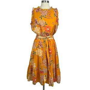 NWT Roller Rabbit Size Large Semara Naoki Dress Orange Floral Summer Belted