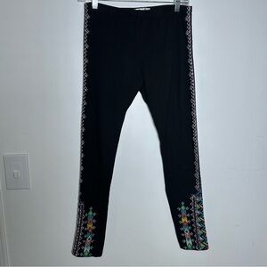 Johnny Was Amaris Black Leggings with Vibrant Embroidery Womens S boho layering