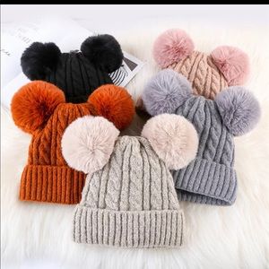 These are the cutest Double pom pom beanies ever. The quality is awesome they are thick and soft and well made. The poms are removable with an easy snd quick snap. And if you buy more than one they are interchangeable. My college age daughter grabbed a tan and pink and they look great!! The inside of the hat is lined with teddy bear fleece. I cannot wait to wear mine!!! Colors will go fast!