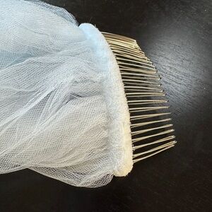 Excellent condition. Basic minimal but beautiful veil with sporadically placed pearls throughout. Raw edge. Approximately 110” long.