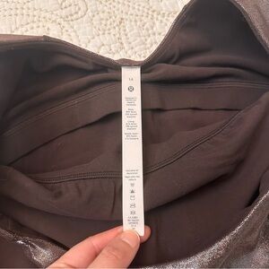 Lululemon athletica Align high-neck shine bra tank in French press brown metallic color; cropped length, built in shelf bra.