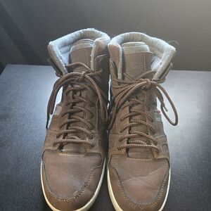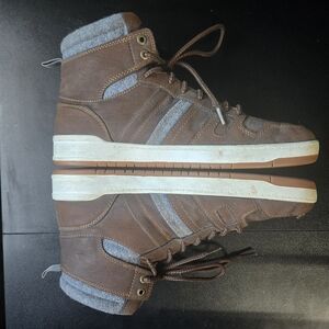 Stylish Levi's sneakers with a brown and gray design. High-top style for added support. Ideal for casual wear.