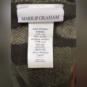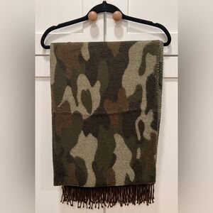 MARK & GRAHAM CAMO PRINT BLANKET SCARF. Super cute and cozy scarf/wrap from MARK & GRAHAM. Chic camo print. Navy & Blue. Fringe edge. Perfect as a big scarf OR as a casual wrap over shoulders. Great for travel. Scarf is in GREAT, GWC, with a little extra fuzziness.