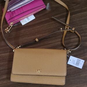 Stylish and versatile, this Michael Kors crossbody bag in tan is perfect for any occasion. Crafted with high-quality materials, it offers both elegance and functionality. phone case/wallet. new with tags.