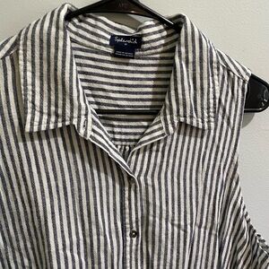 Splendid Linen Blend Gray/ Cream Striped Nautical Button Down Tank Blouse Medium