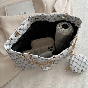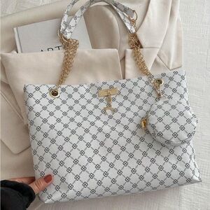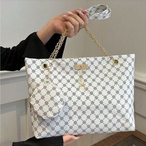 ⚠️Clearance Chain Shoulder Tote Bag Elegant White Patterned Bag with Gold Chain