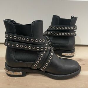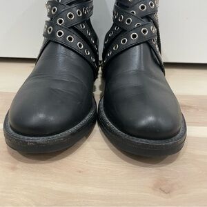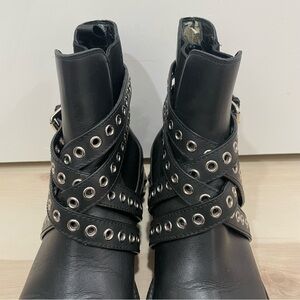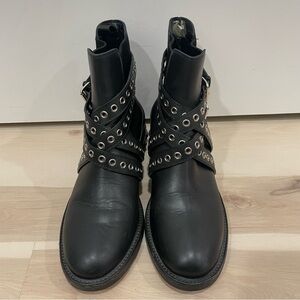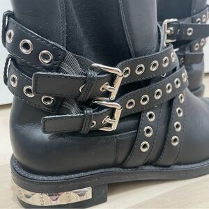 Miu Miu 5T652A Bisonte 2 Nero (Black) Women’s Biker Leather Boots Size 41 Buckle