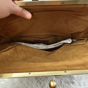 Patricia Nash Bosa Black Gold Metallic Rose Embossed Framed Leather Clutch Bag