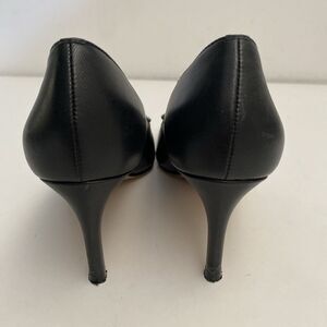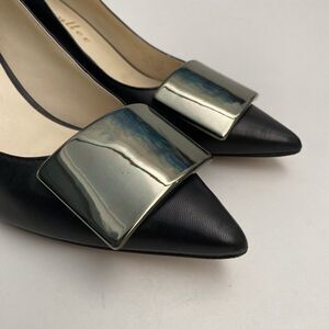 Bettye Muller Pump Black Leather Point Toe Slim 2.5" Heel Green Plate 6.5