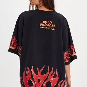 Sabbi Black Graphic Flame Tee NWT New XS Oversized Sold Out Rare HTF shirt dress