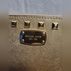 Michael Kors Large Wristlet Saffiano Stud Gold Leather Gold Zip