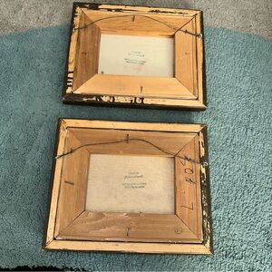 Set of two framed nature landscape paintings. Features vibrant autumn colors and serene forest scenes. Perfect for home decor
