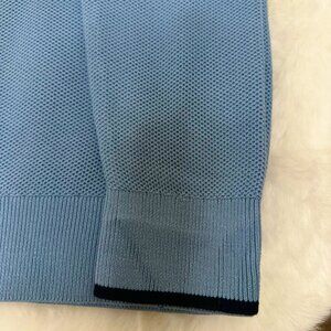 Elevate your casual wardrobe with this classic Michael Kors men’s sweater. Crafted in a soft, textured knit, this long-sleeve pullover features a sleek quarter-zip neckline with a stand collar for a polished, modern look. The light blue color makes it versatile for layering or wearing on its own, perfect for work, weekends, or casual outings. Comfortable, stylish, and timeless.