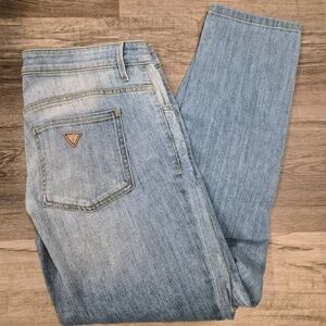 Guess Distressed Hipster Punk Tomboy Light Wash Ripped Skinny Jeans US 27