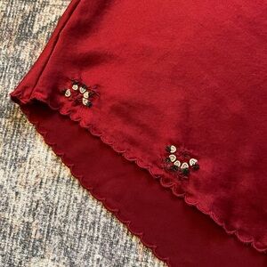 Doen silk cami and shorts, the top is size XXS and the bottoms are XS. They’re both 90% Silk and 10% Lycra. They have beautiful embroidery on them, and scalloped edges. The embroidery is very slightly worn on a few spots (pictured). The cami has adjustable straps. Will send it in a Doen duster bag!