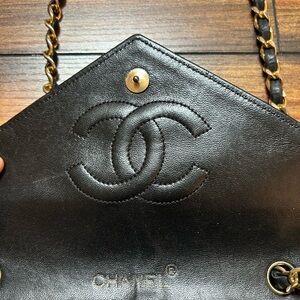 Vintage Chanel Shoulder Envelope Crossbody Bag Matelasse Black Lamb Skin