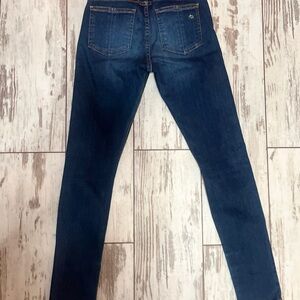 New Without Tags Rag & Bone zipper capri skinny jeans in a dark to medium blue wash with subtle whiskering and distressed knees. This edgy, modern style features functional zipper details at the inner ankles for a statement finish.