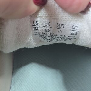Like new with box. Looks like try on wear. There is an bluish stain on rubber sole of one shoe. See pictures.
