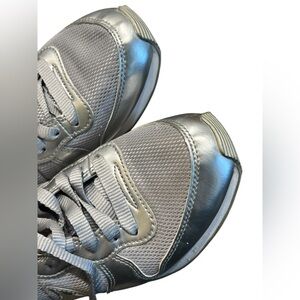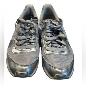 Stylish silver athletic sneakers with a sleek design. Perfect for casual wear. Worn once. Too small. Size 6 USA. Rare.