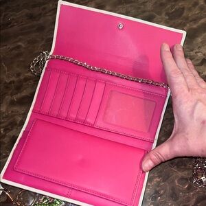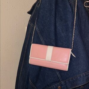 Coach Pink and Cream Continental Long Wallet and Checkbook w/ unbranded chain