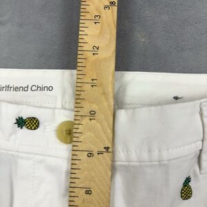 Talbots Pants Womens Sz 10P White Girlfriend Chino Pineapple Embroidered