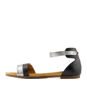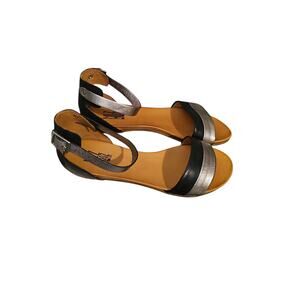 Miz Mooz 40 Atlantic Black Silver Metallic Leather Ankle Strap Flat Sandal 9 new