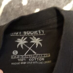 Stylish black long sleeve shirt featuring a unique yellow floral design on the sleeve and a graphic on the chest and back. part or 5 for 25 sale