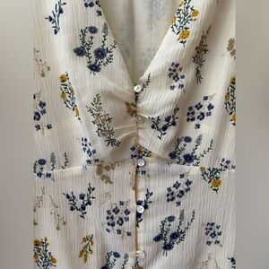 Ba&sh Floral floaty lady Button midi tea dress cream white 2 M French puff sleev