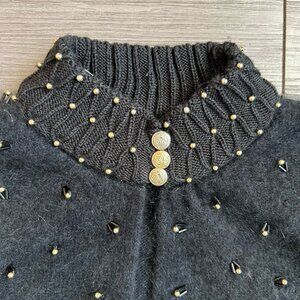 Vintage Angora Fuzzy Beaded Maximalist Sweater Knitwear Nina Austin Size L