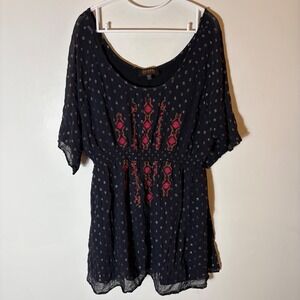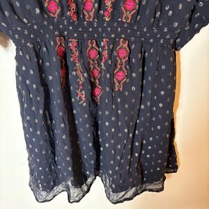 Shyanne Smocked Southwestern Floral Embroidered Mini Dress Size XL