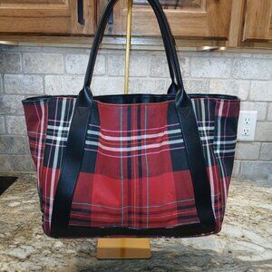 🎀 Victoria’s Secret Red Plaid Floral Tote Bag