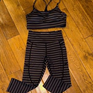 Elevate your style with this chic striped black and white sports bra and leggings active wear set. Side pockets on leggings.
