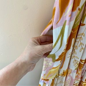 Cream background with orange, pink, green and yellow tropical floral print