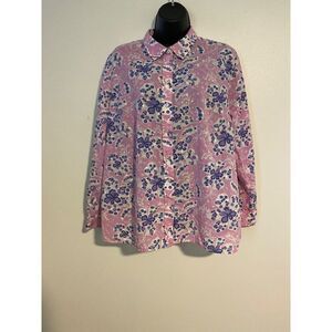 This women's M shirt by Banana Republic features a charming Navy horseshoe print on blue 100% cotton fabric. Its long sleeves and button-up design offer a classic look for various settings. Preppy, Country, Cowgirl, Coastal Cowgirl, Western, Casual, Comfy. Pre-owned in excellent condition.