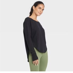 JoyLab relaxed fit waffle long sleeve shirt with curved hem and thumb holes- brand new! NWOT