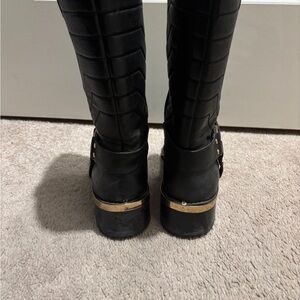 Step out in style with these chic black quilted boots. Perfect for any occasion, these boots offer both comfort and elegance.