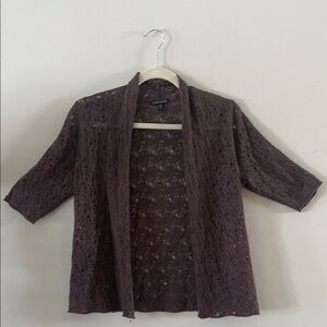 Eileen Fisher Brown Open Lacey Knit Wool Cardigan Size XS 100% wool