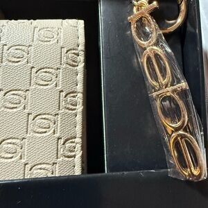 Elegant Bebe wristlet in ivory with metallic details. Ideal for versatile use. New in box - never used!!!