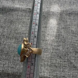 Ralph Lauren Matte Gold-Plated Clear Rhinestone Blue Cabochon Size 6.75/7 Ring