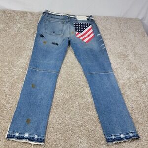 First Row Slim Straight Jeans 32x32 Made In USA American Flag Paint Splatter