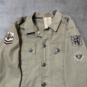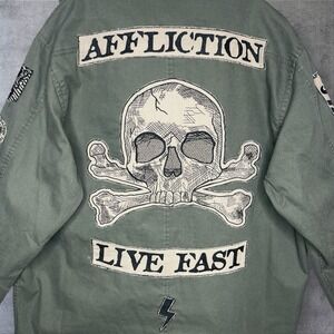Vintage Y2K Affliction Jacket Men XL Army Green Military Biker Skull Grunge