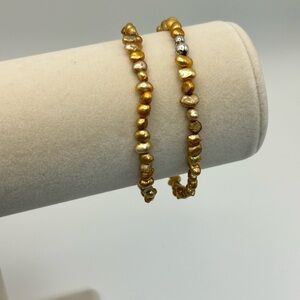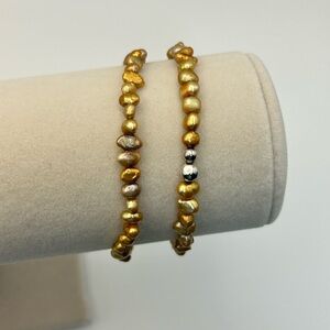 Silpada Bronze Stretch Silver Beaded Bracelet Pair Freshwater Pearls Silver Bead