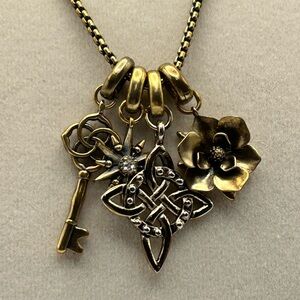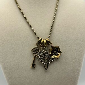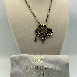 Kendra Scott Charms Collection Bronze Gold Tone Necklace 4 Snap Charms Key Flower Star Celtic Cross