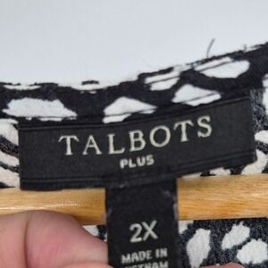 Talbots Plus 2X Black White Abstract Print Wrap Tie Waist Blouse Long Sleeve Top