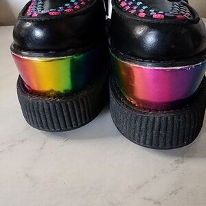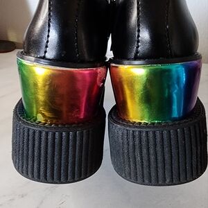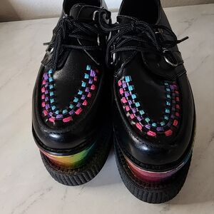 T.U.K. Rare Tuk Black Leather Triple Rainbow Sole Viva Creepers Mondo Size 6